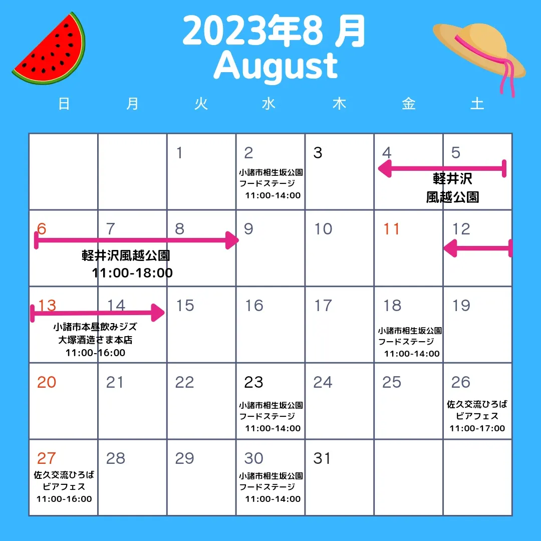 2023年8月スケジュールのご案内